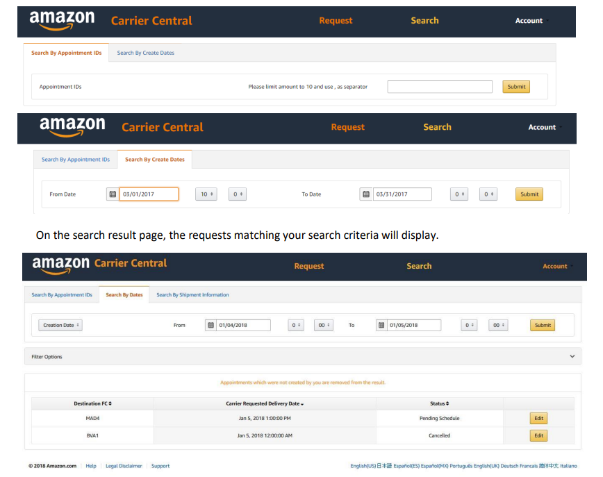 • Direct delivery to Amazon U.S., retail DCs, or 3PL warehouses